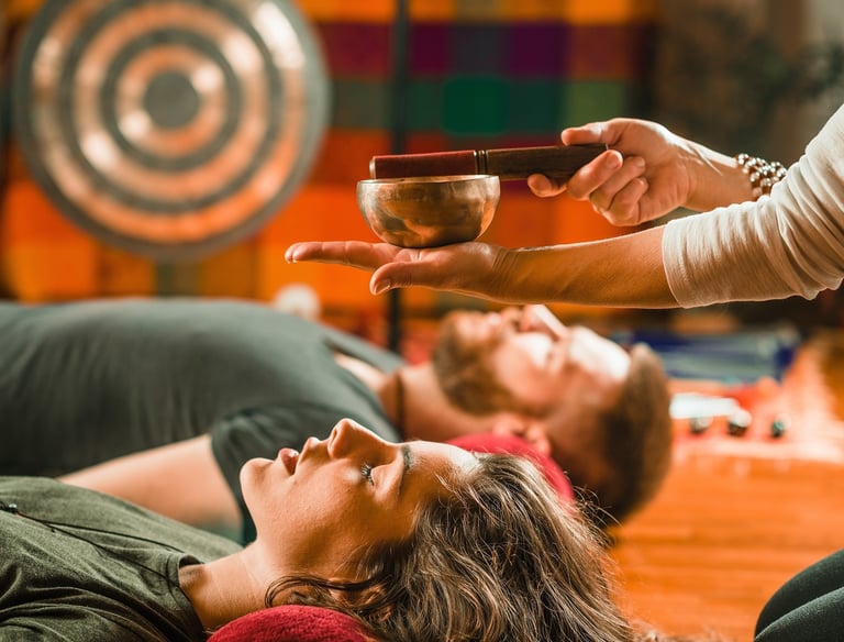 Yoga Naam, también conocido como "Sound Healing" o "Baño de Sonido" en el mundo occidental, utiliza cuencos tibetanos y otros instrumentos específicos. Durante la sesión, la persona es expuesta a un rango de frecuencias entre 32 Hercios (Hz) a 2,600 Hz, lo que genera un barrido energético tanto en el cuerpo físico como mental. Este proceso ayuda a liberar tensiones, relajar el cuerpo, y alcanzar estados meditativos de calma sin esfuerzo alguno. Yoga Naam es una herramienta complementara a tratamientos psicológicos, reducción de estrés y ansiedad.